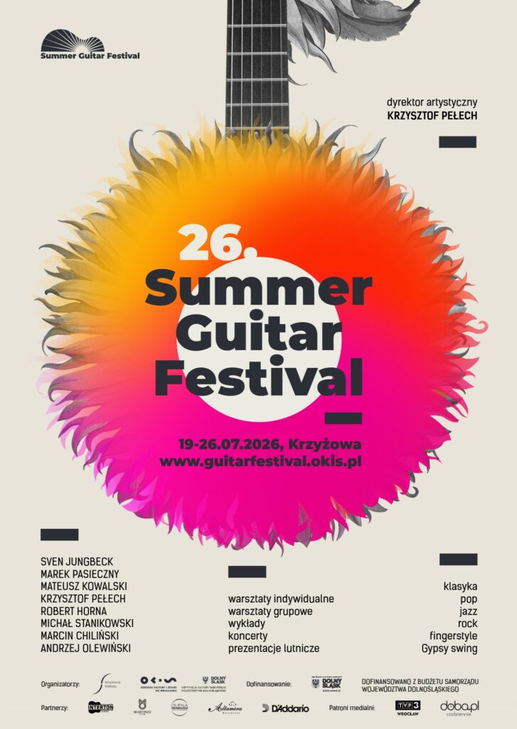 za nami 25 lat warsztatów gitary w Krzyżowej. To już 25 lat edukacji muzycznej na najwyższym poziomie połączonej ze znakomitą zabawą i historią wielu nawiązanych znajomości. To magiczne miejsce znacząco wpłynęło na życie wielu uczestników i stałych bywalców tego wakacyjnego wydarzenia. Ale Krzyżowa to przede wszystkim ludzie, ludzie w różnym wieku, o rozmaitych profesjach i zainteresowaniach, których łączy miłość do muzyki a pasją jest gitara. Niejednokrotnie myślałem, aby wspomnienia wydarzeń w Krzyżowej przelać na papier i opublikować w książce opartej na faktach, i uwierzcie mi, nie byłaby to publikacja zbierająca kurz. […]